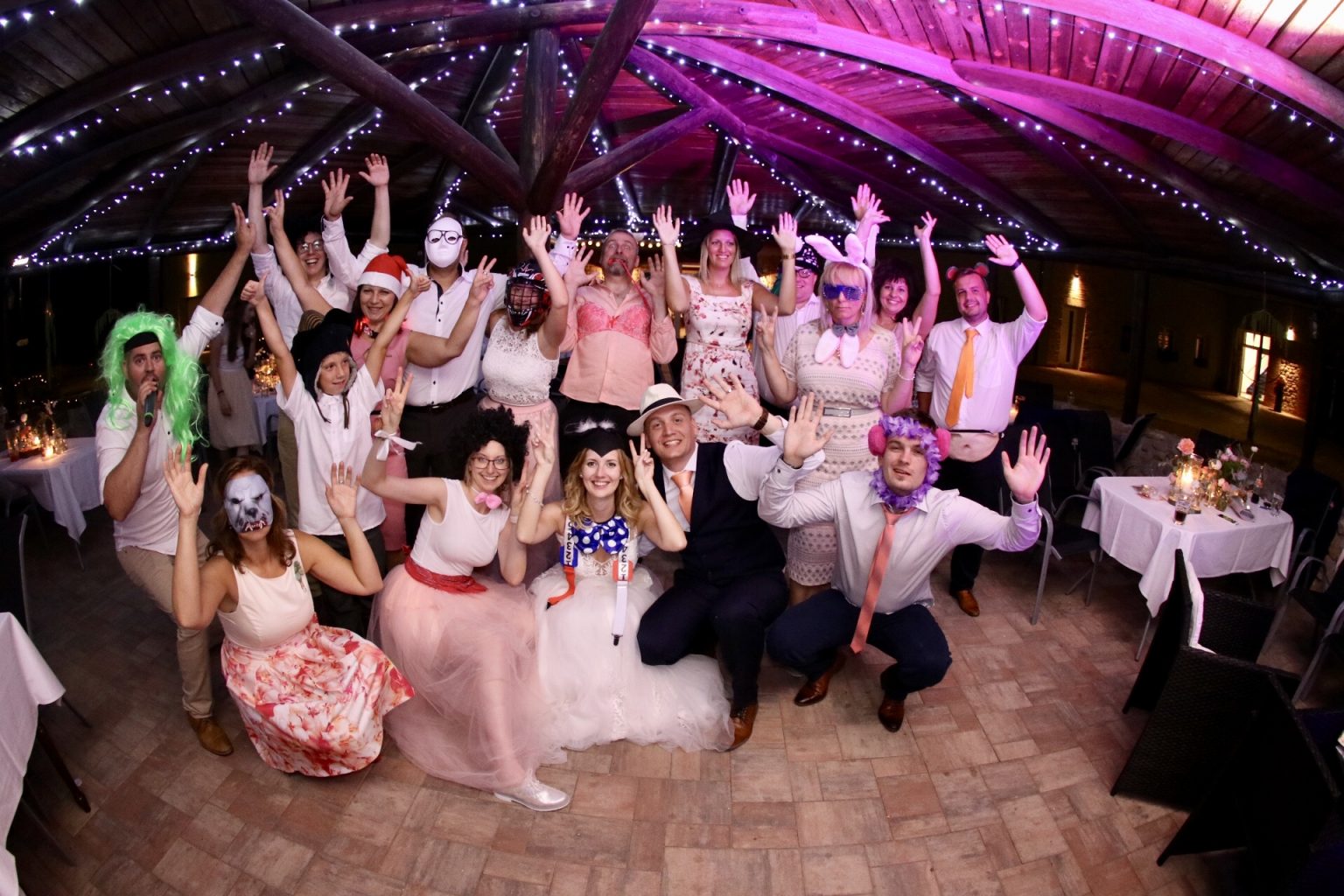 Před svatbou nakoupíme 2-3 látkové pytle (povelčení na středně velký polštář), do kterého seženeme různé doplňky, které lze snadno nasadit. Např.: velké sluneční či dětské brýle, svářecí brýle, letecká maska, různé druhy čepic (s rovným kšiltem, zimní, hadovka, policejní…), kukly a masky, bryndáky, kravaty, paruky, klobouky, čelenky (s ušima, rohama…) … atd. Lze toho vymyslet opravdu hodně.