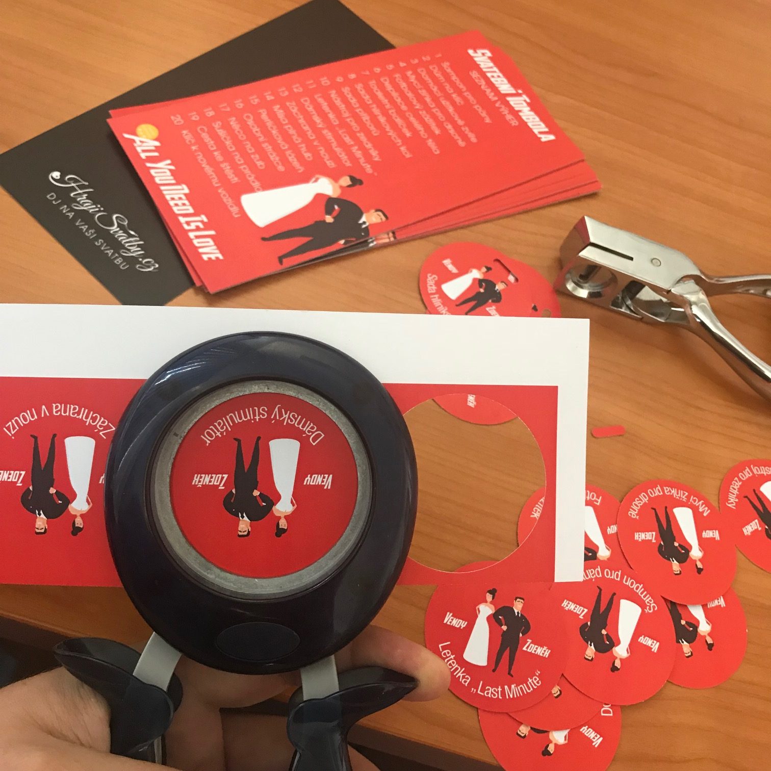 Svatební tombola na míru – objednejte si kompletní balení! Pokud si na svou svatbu objednáte mé služby DJe, o tombolu se vám rád kompletně postarám: připravím zabalené výhry, seznamy cen na stoly, a zajistím šatní bločky k prodeji. Tombolu samozřejmě i odmoderuji a postarám se o skvělou atmosféru!