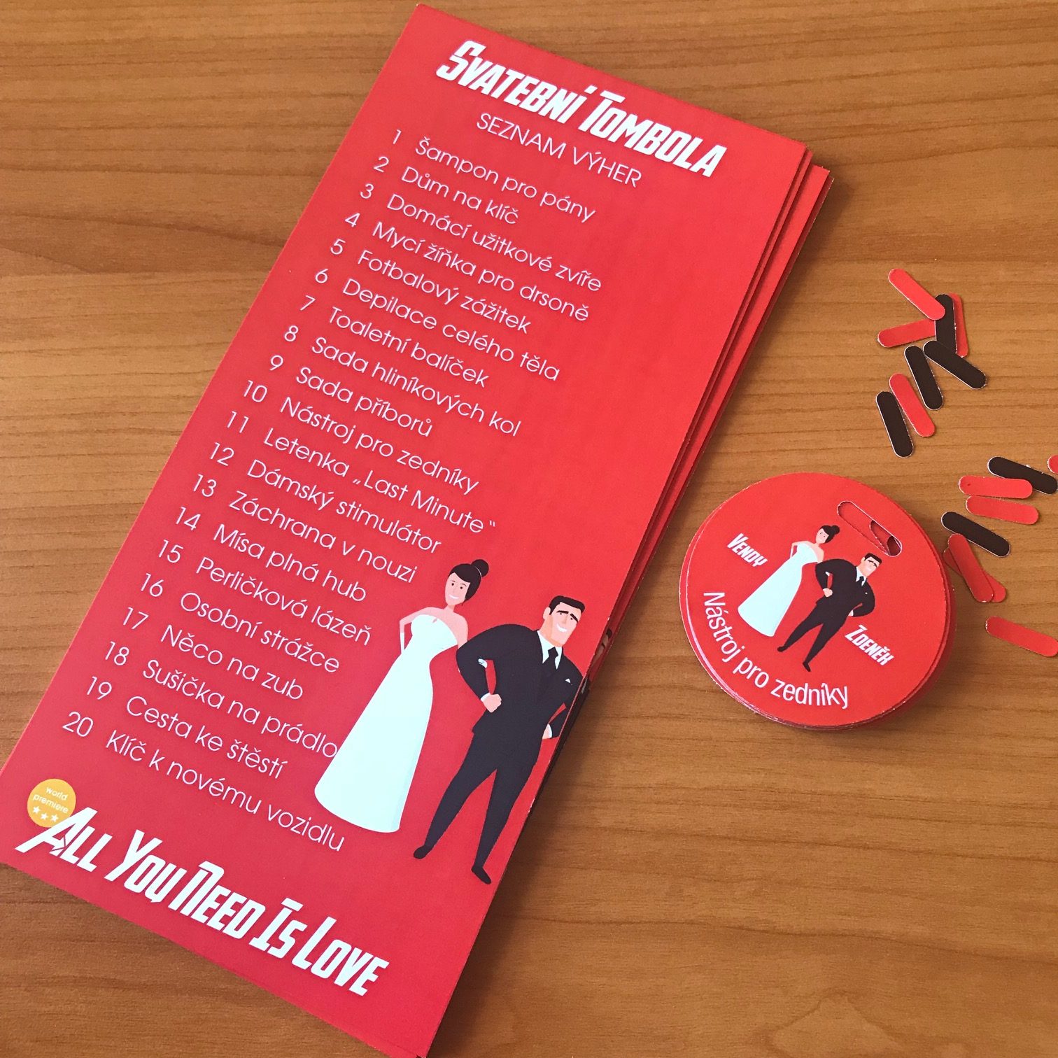 Nechcete tombolu na svatbu složitě vymýšlet? Objednejte si připravený balíček ještě dnes.